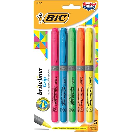 Amazon Com Bic Highlighter Fluorescent Pens Assorted Colours Pack Of 5 Office Products